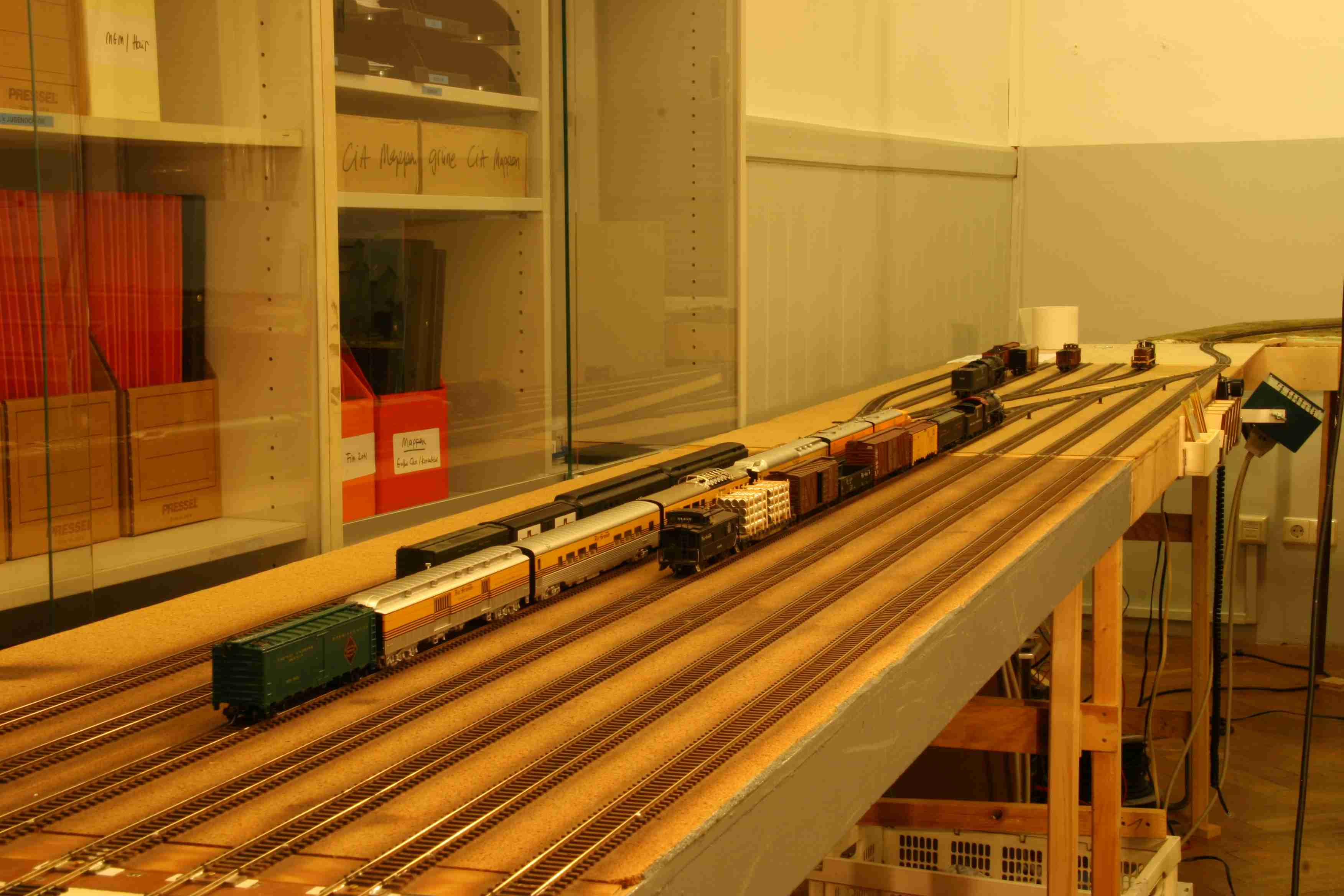 Zusatzmodule zu einem 14 gleisigen Abstellbahnhof mit insgesamt 13m Länge kombiniert werden